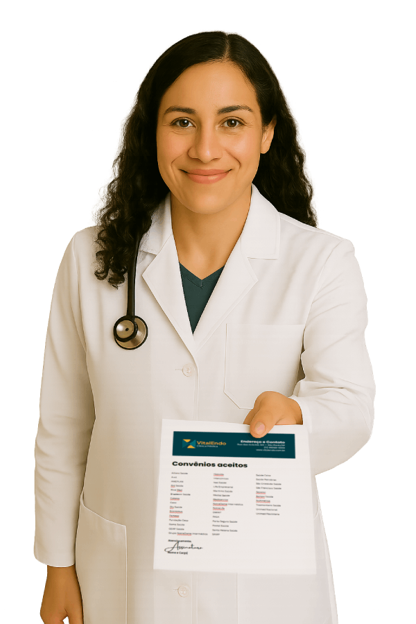 A VitalEndo está conectada com os principais planos de saúde. E, se você precisar, ajudamos com reembolso ou encaminhamentos. Nosso foco é tornar o seu cuidado mais simples.