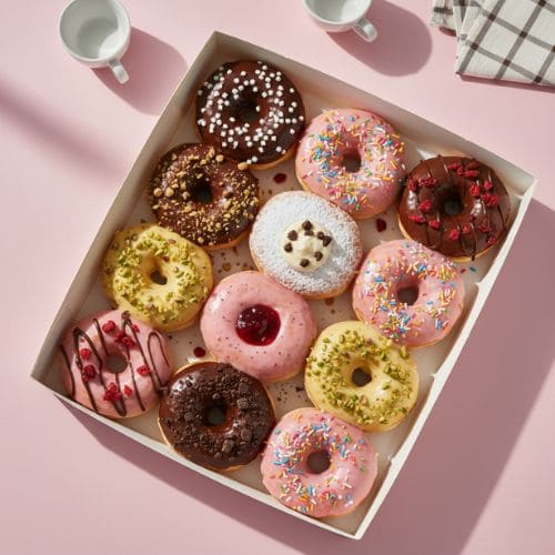 Monte seu pedido e receba donuts fresquinhos onde estiver. Rápido, fácil e cheio de sabor!