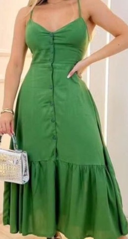 Vestido Longo Feminino Crepinho com bojo, botões, alcinha ajustável e forrado por dentro. Tendência Verão leve e confortável ideal para os dias quentes. Tamanho Único (Veste do 36 ao 42) Tem bojo. *ENVIO EM 24h*Vestido longo Crepinho Com Bojo e Botões Verde Fofo,elegante,Boho,Festa Sem Mangas Simples Justa Primavera / Outono,Todos,Primavera / Verão Women Clothing, size features are:Bust: ,Length: ,Sleeve Length: