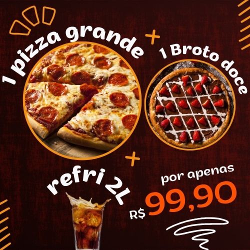 1 Pizza Grande Salgada + 1 Pizza Broto Doce + 1 Refrigerante 2L