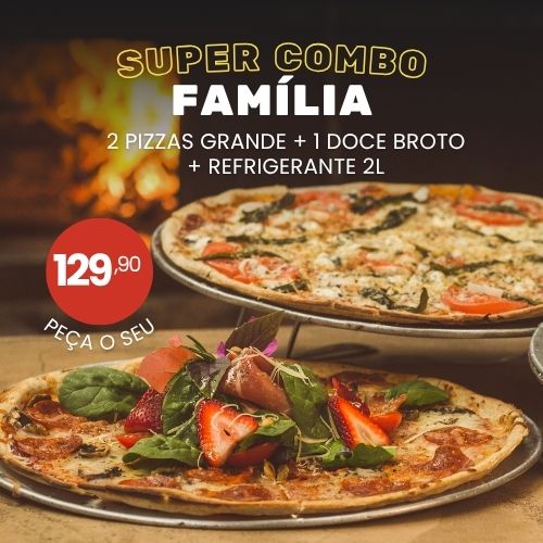 2 Pizzas Grandes (qualquer sabor) + 1 Pizza Doce Broto + 1 Refrigerante 2L