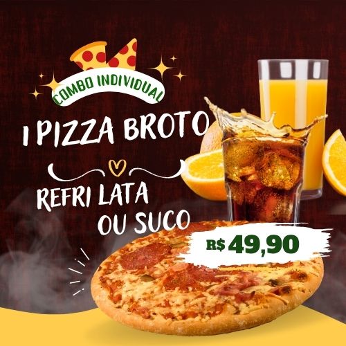 1 Pizza Brotinho + 1 Suco 300ml ou Refrigerante Lata